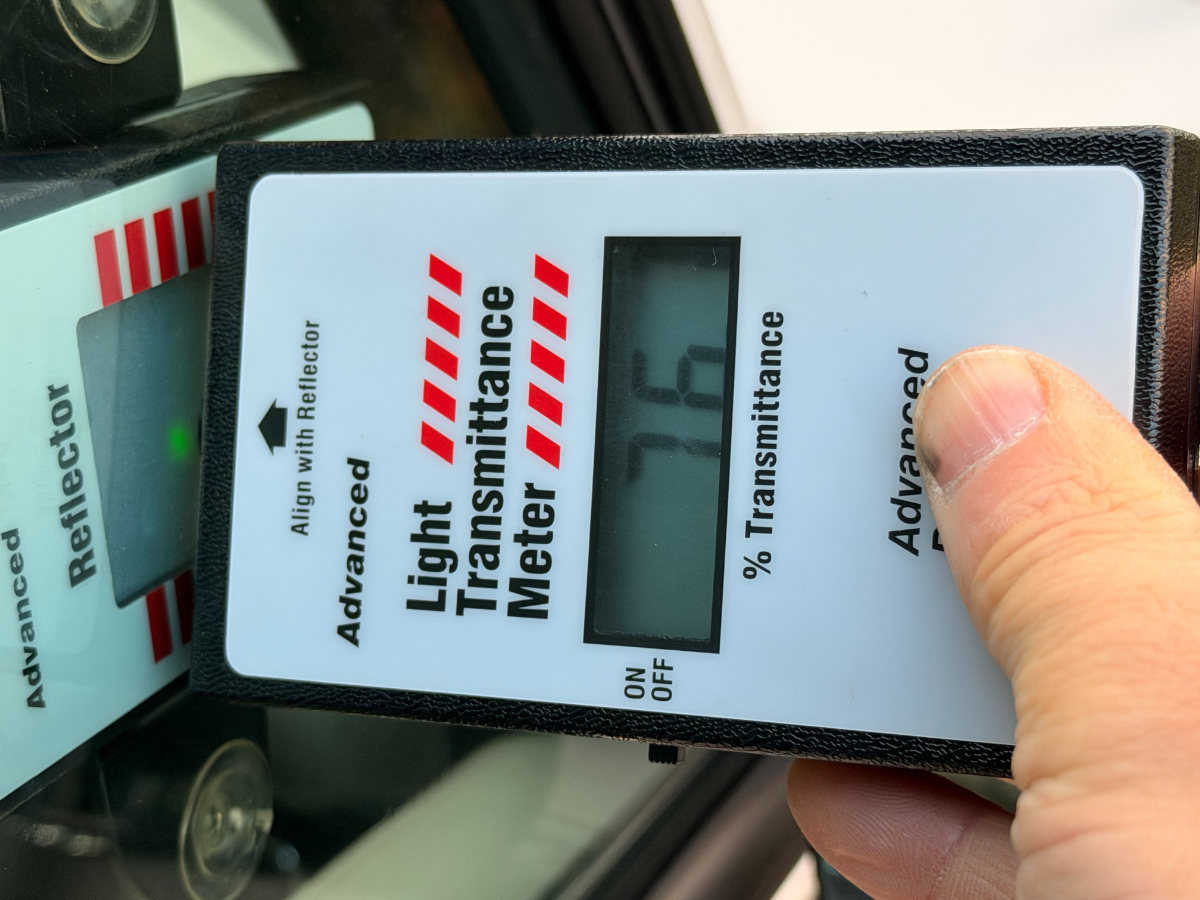 透過率を測ったところ76.1%とかなり高い数字です。行動走行も車検通過も全く問題ありません。今日は雪が降る寒さですが、熱はガラスから移動しますので暖まった車内の熱も逃がしません。夏場は非常に予約が込み合いますのでぜひ今のうちに施工をおすすめします。ご連絡お待ちしております!
