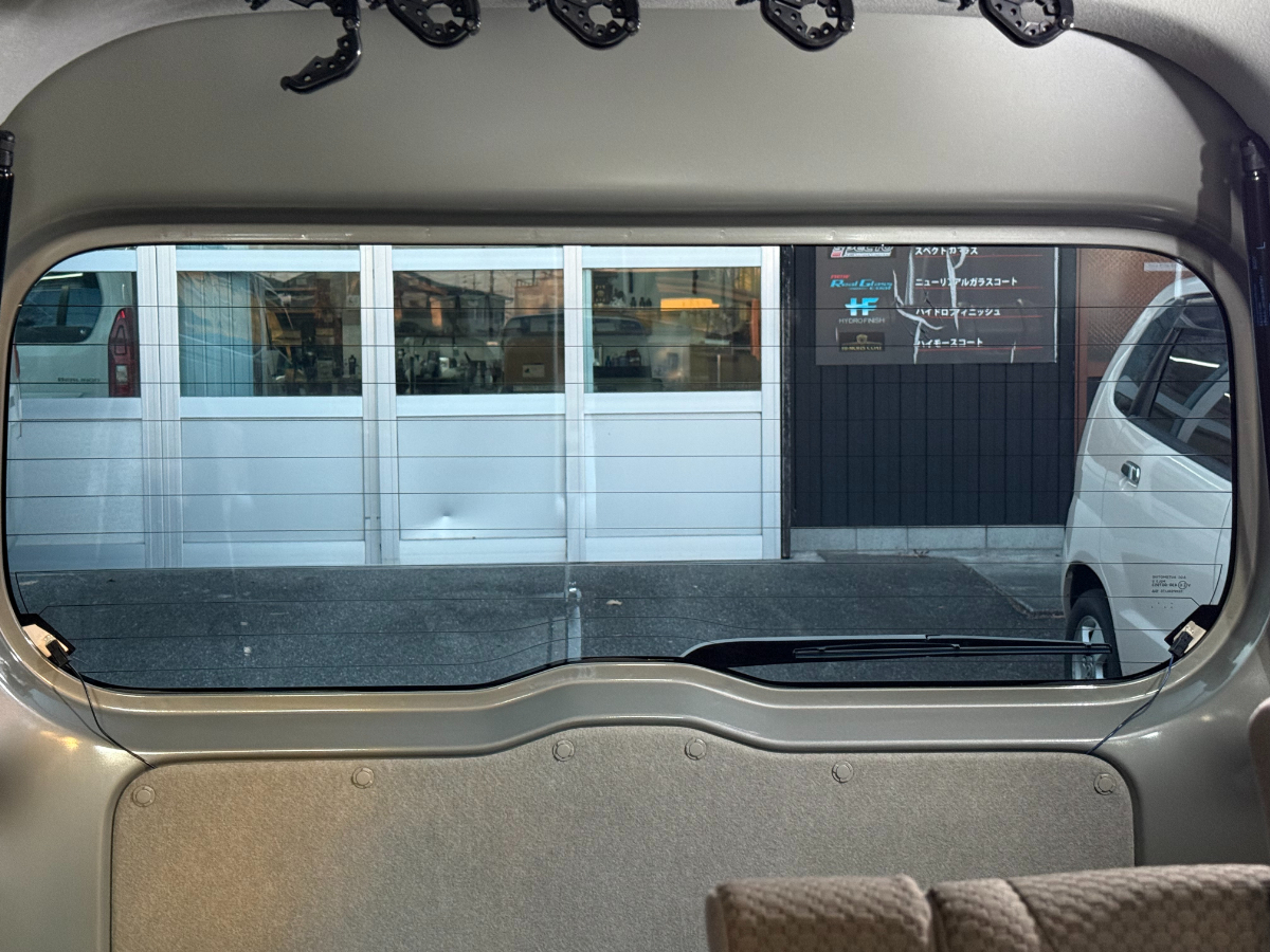 純正着色ガラスは色が薄いので車の中の様子がかなり見えてしまっています。