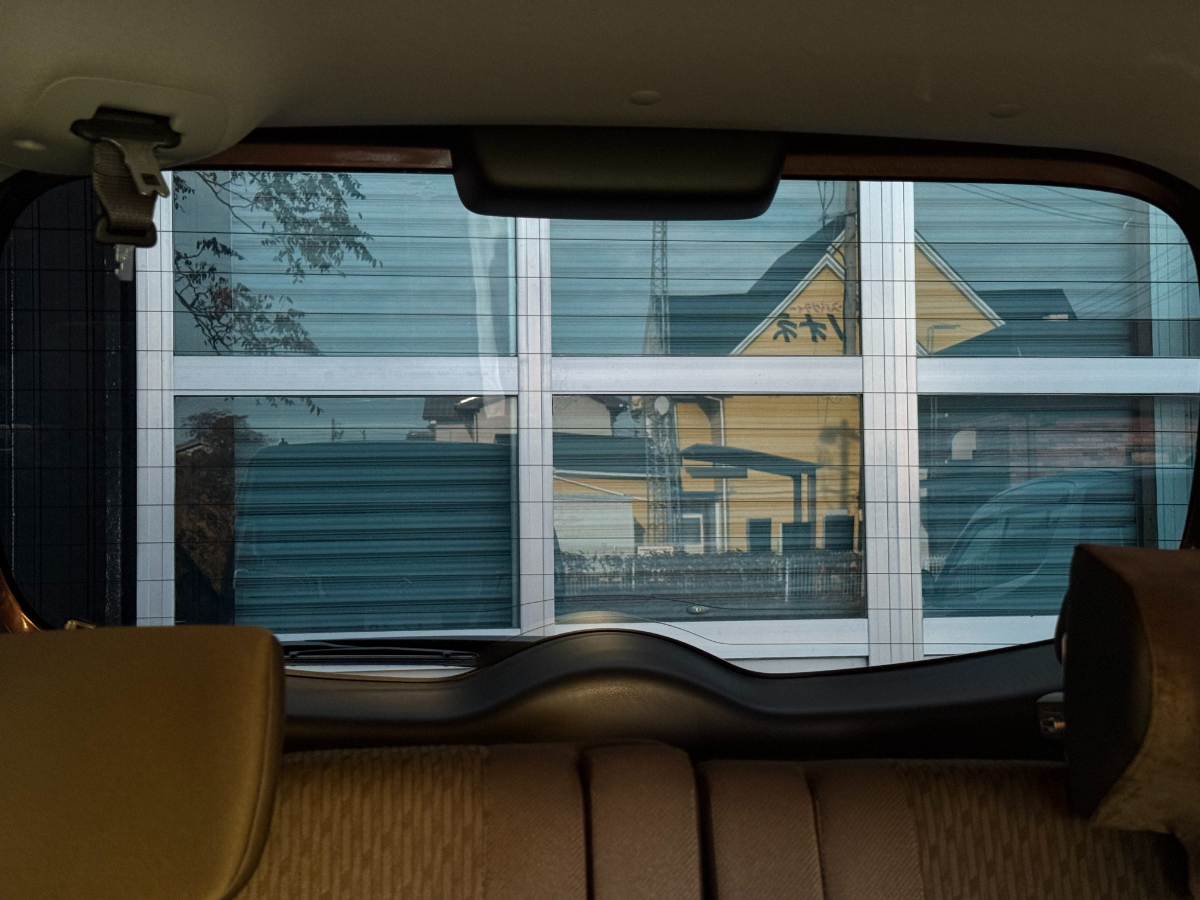 純正着色ガラスは色がかなり薄いので向こう側の景色が見えています。