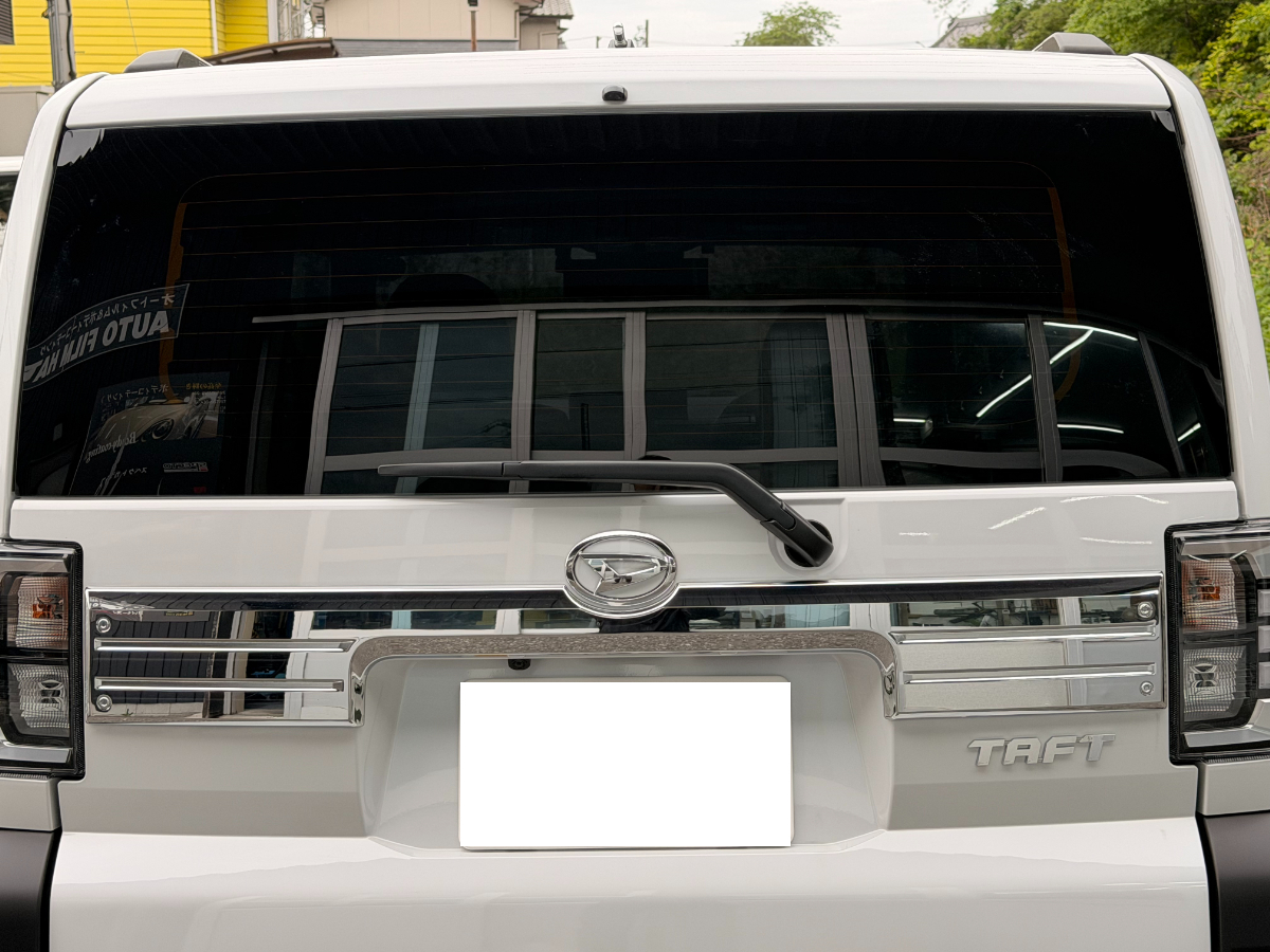 リア全面には濃いめの濃さである透過率8%のカーフィルムを施工しました。車の中の様子はほぼ分かりません。