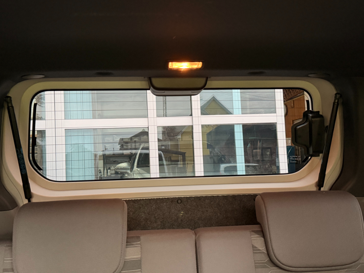 辺りが曇り空ですので真後ろからも車内がかなり見えづらいです。