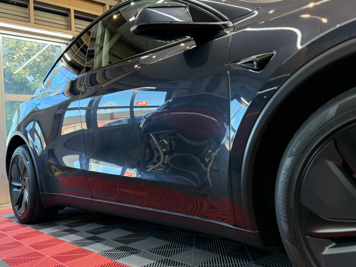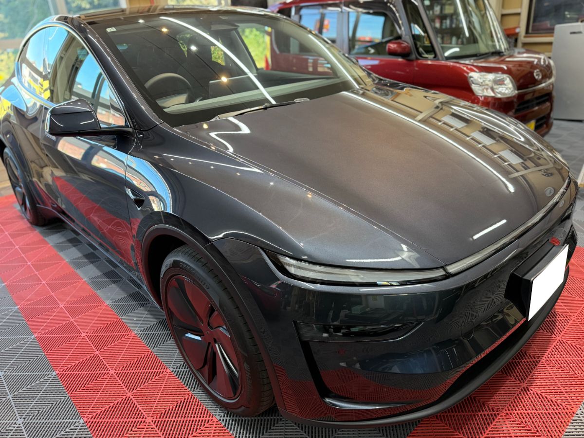 愛知県半田市からお越しのお客様のモデルYにメシアス3Dガラスコート3層施工とフロントガラス撥水コーティングを施工しました。