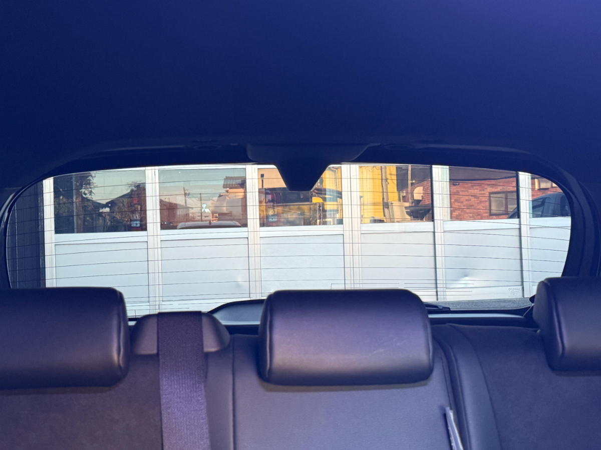 このようになりました。着色ガラスとカーフィルムが重なり合って大体透過率8%程度の濃さになっています。
