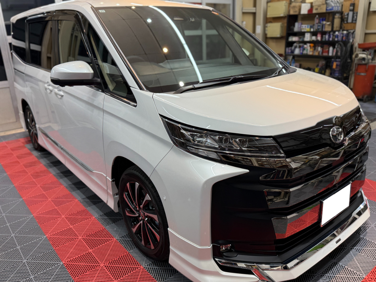 愛知県知立市からお越しのお客様のノアにドット対策カーフィルムとメシアス3Dガラスコート3層施工とドアノブプロテクションフィルムと窓ガラス全面撥水コーティングを施工しました。