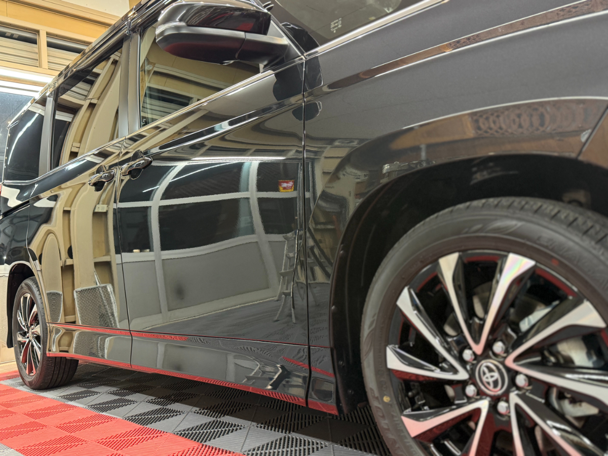 カーコーティング施工のために磨きをして、カーコーティング剤がしっかり定着しやすいように複数の工程で脱脂洗浄を行います。こちらの作業は省かれがちですが非常に重要ですので当店では手間を惜しまずしっかり作業を行います。