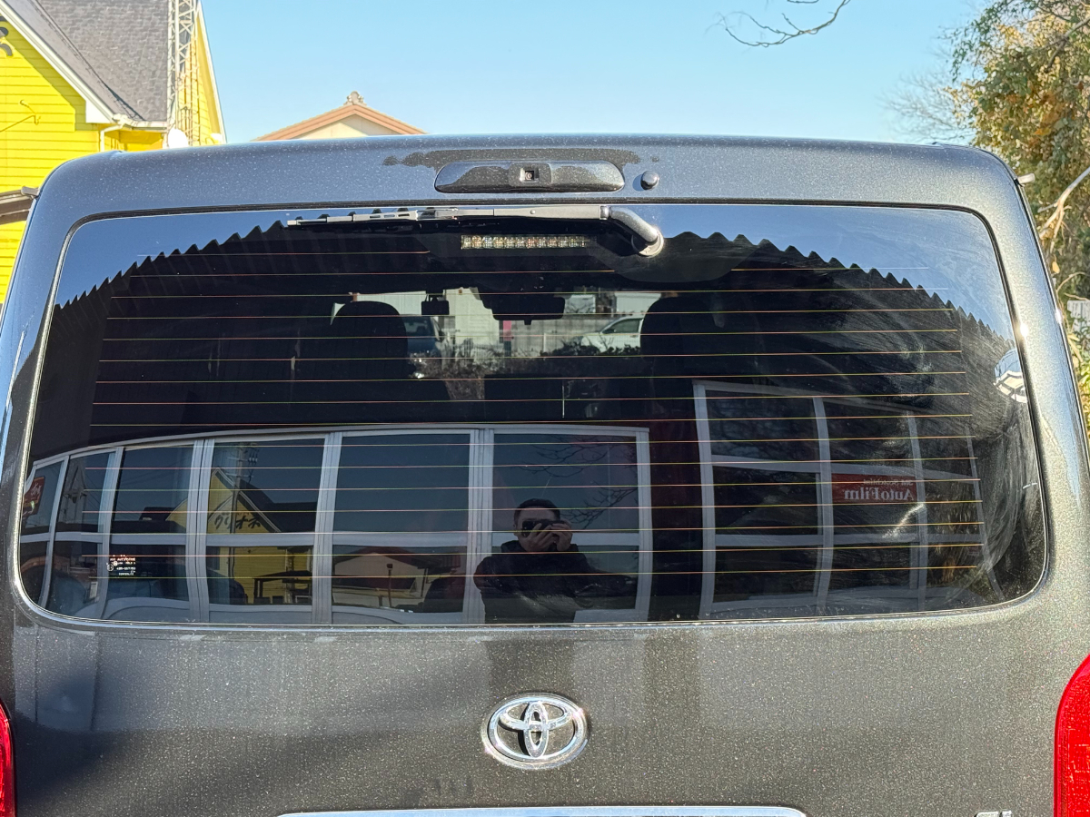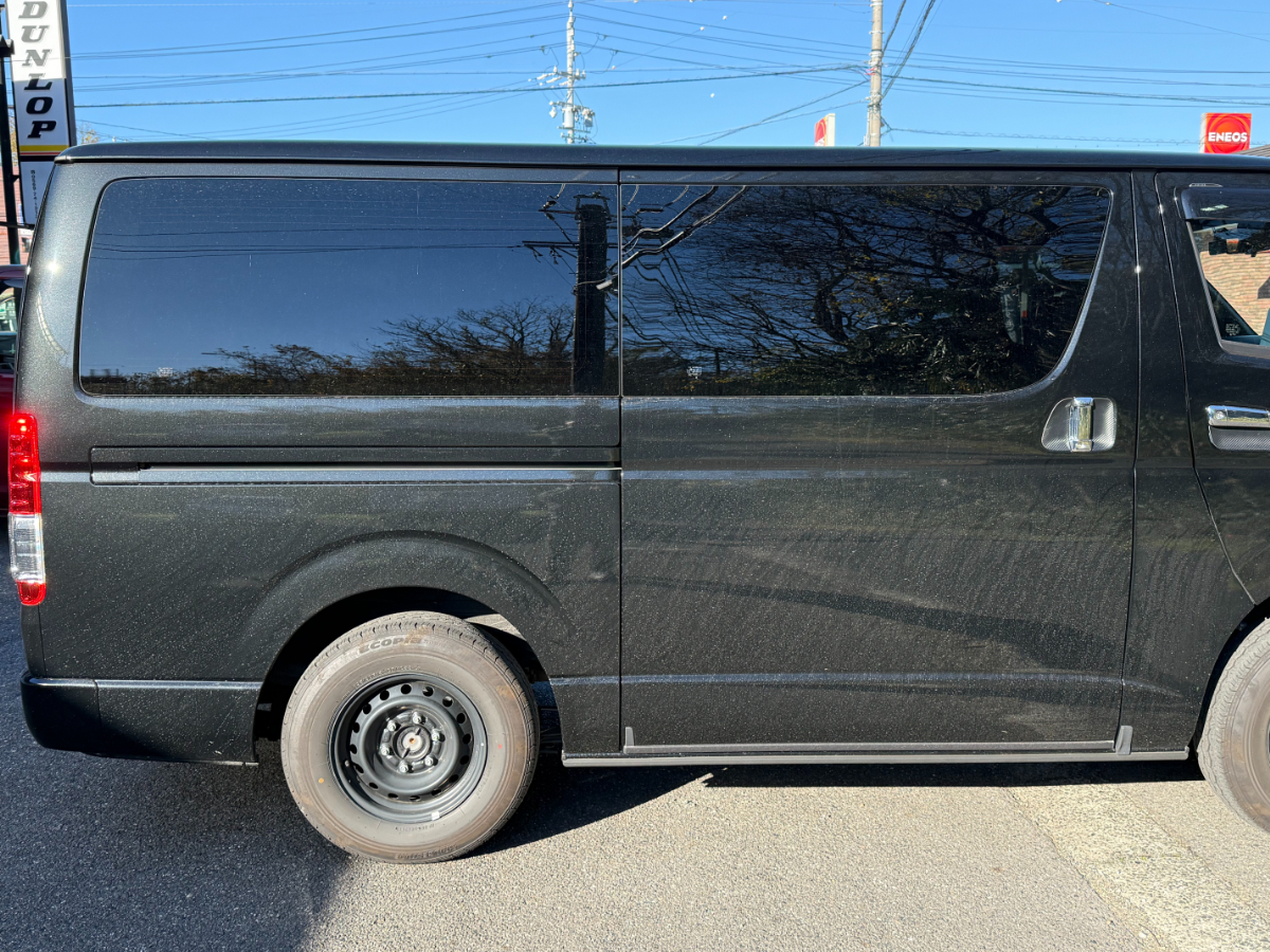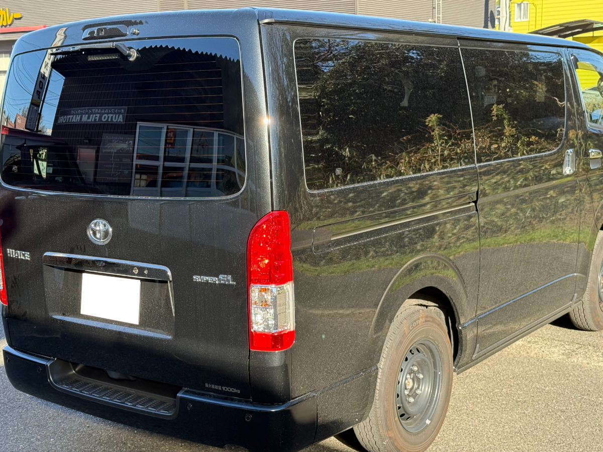 今回は濃い目の濃さである透過率8%のフィルムを施工しました。向こう側も同じ濃さのフィルムを貼っていますので真横から見るとかな濃い目に見えます。