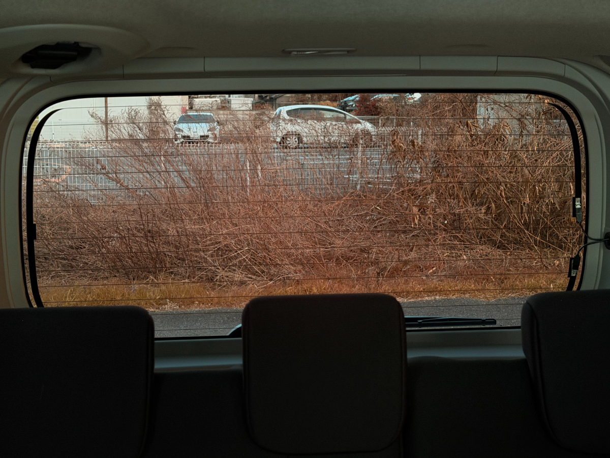 透過性の高いカーフィルムを使用しておりますので中からの視界はご覧の通りです。ただ他の濃さのカーフィルムと比べるとどうしても見えづらくはなりますので、運転の際はぜひお気を付けくださいませ。