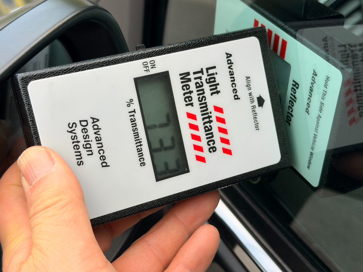 透過率を測定したところ73.3%と高い数値が出ました。公道走行も車検通過も全く問題ありません。