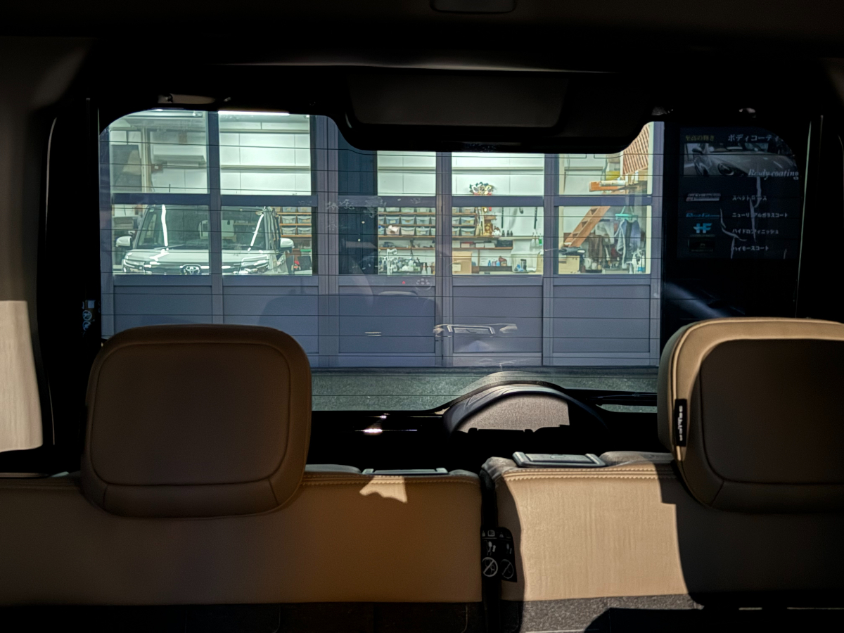 今回は最も濃い色である透過率4%のカーフィルムを施工しました。車の中の様子が全く分かりません。