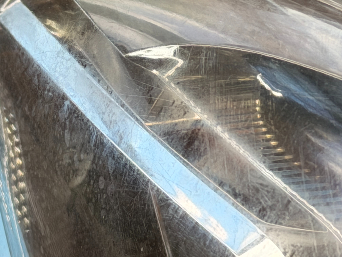 オーナー様が透明化をされていてクリアな感じは問題ありませんでした。寄って見ると傷が多めですので磨き作業をします。