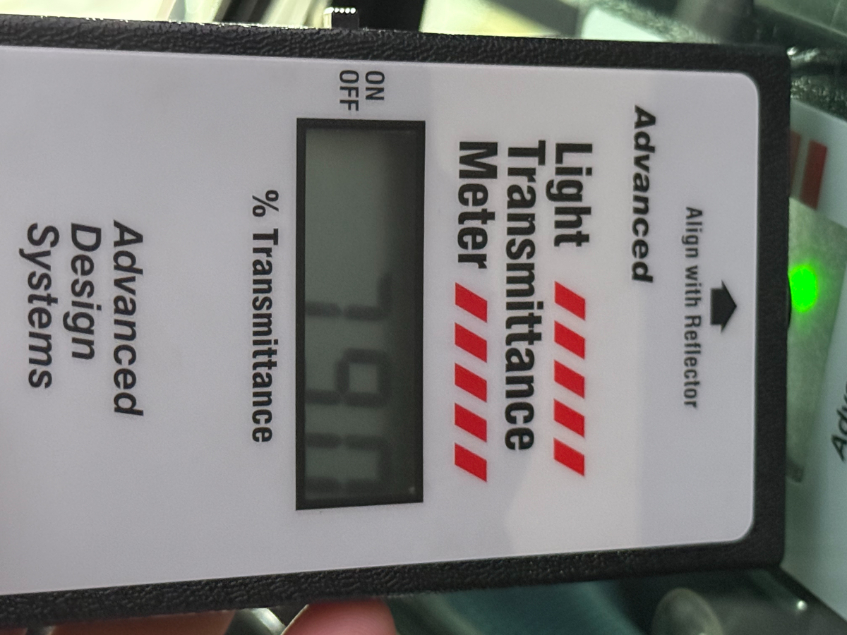 透過率を測ったところ79%とかなり高い数値が出ました。車検や公道走行も全く問題ありません。