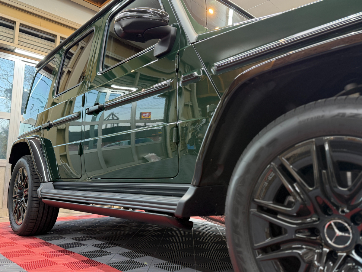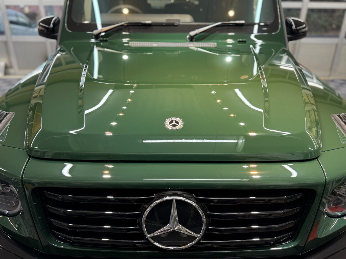 Gクラスにメシアス3Dガラスコートとレザーシートコーティングとフロントガラス撥水コーティングを施工しました。